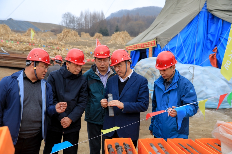 张伟汉局长一行还到四平勘院在通化县和六队在白山市江源区钻探施工现场进行实地考察,听取了项目进展情况的汇报,并与钻探一线职工进行亲切交谈。