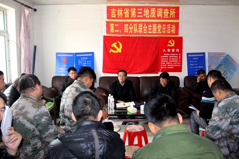 11月6日,邴诚副局长深入五所桦甸市色洛河金矿勘查区钻探施工现场,为野外一线党员干部职工宣讲十九大精神。