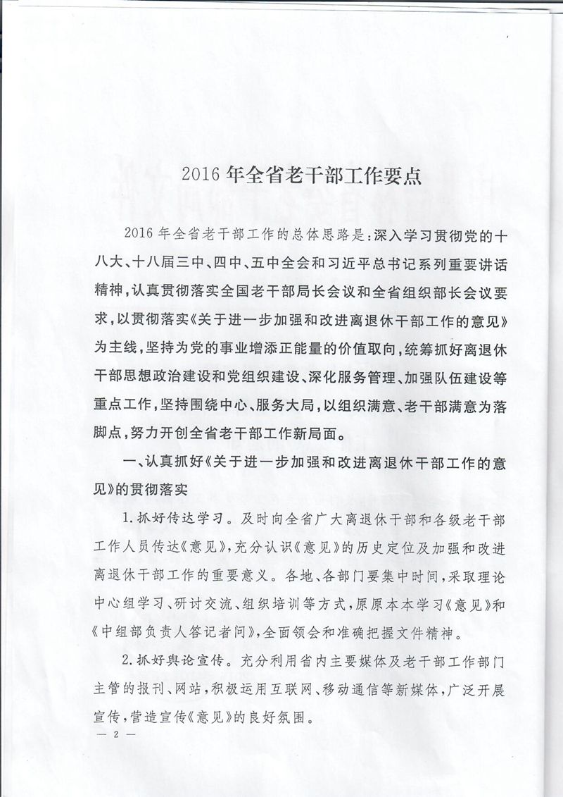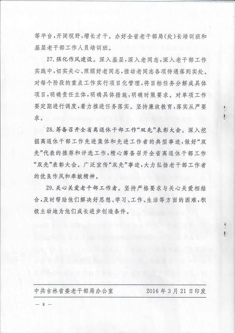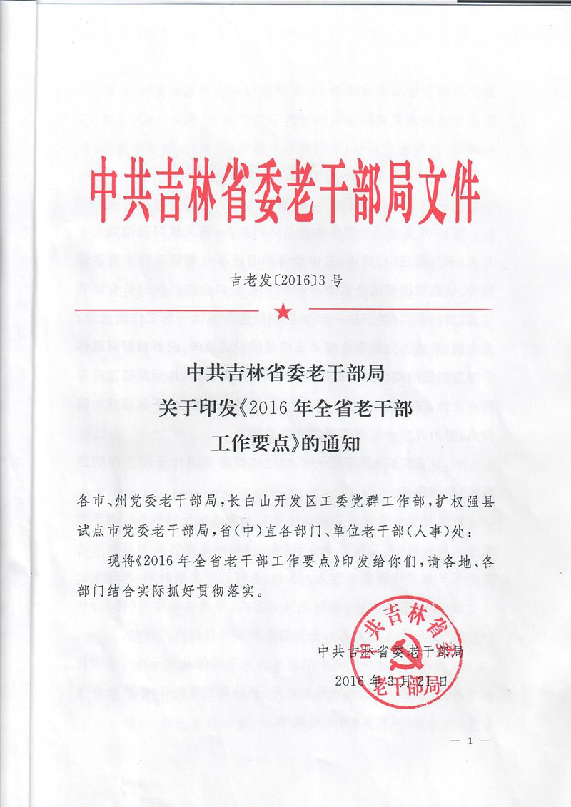 中共吉林省委老干部局关于印发《2016年全省老干部工作要点》的通知