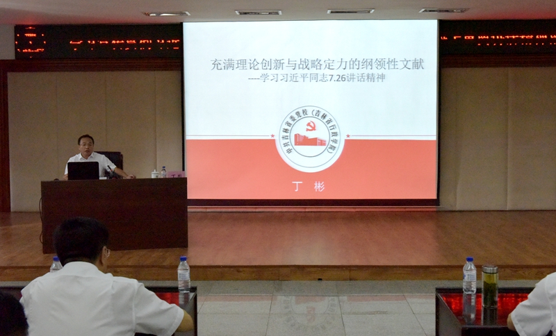 (本网讯)8月24日上午,局党组理论学习中心组召开了第七次扩大学习会议,学习习近平总书记在省部级主要领导专题研讨班上的重要讲话精神。会议由局党组书记、局长张伟汉同志主持,邀请吉林省党校党史党建教研室副主任、教授丁彬做了题为《充满理论创新与战略定力的纲领性文献》的专题辅导。 局领导,局机关全体党员干部、局属各单位班子成员、党办主任共 145 人参加了学习会议。